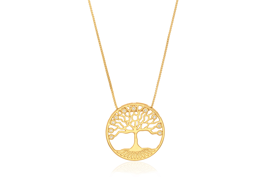 GARGANTILHA BANHADA EM PRATA LEVE, ELO PORTUGUÊS 1,80mm, ÁRVORE DA VIDA 8mm DIÂMETRO, EXTENSOR 5cm COMPRIMENTO, 80cm COMPRIMENTO