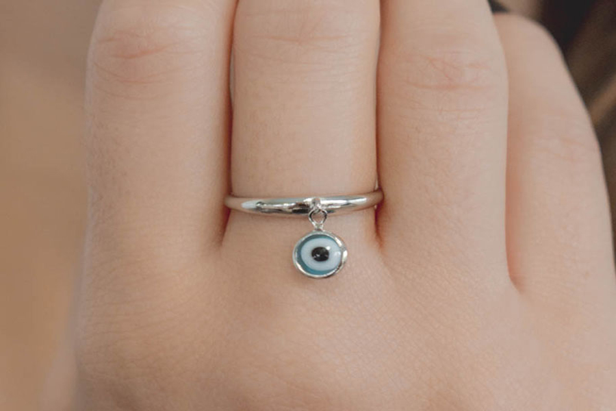 ANEL AU, OLHO GREGO EM MADREPÉROLA COM BORDAS CRAVEJADAS, 13,60 DIÂMETRO