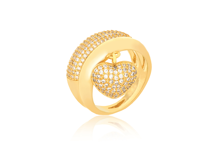 ANEL BANHADO EM OURO CORAÇÃO 15mm ALTURA