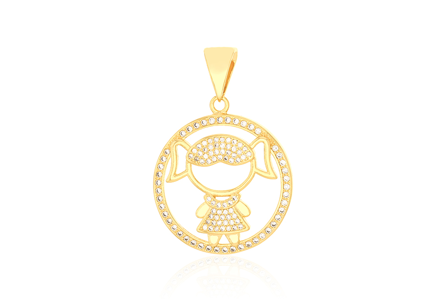 PINGENTE BANHADO EM OURO MENINA COM 10 ZIRCÔNIAS E 24mm ALTURA