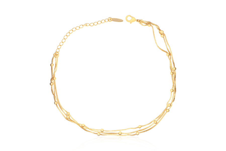 TORNOZELEIRA BANHADO EM PRATA LEVE, ELO VENEZIANA 0,80mm, 22cm COMPRIMENTO, EXTENSOR 5cm COMPRIMENTO, COM ESFERAS 2,50mm