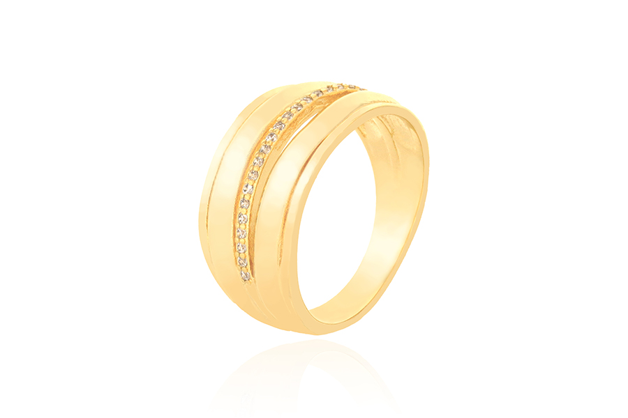 ANEL BANHADO EM OURO, APARADOR DUPLO COM 2 FILEIRAS DE ZIRCÔNIAS CADA