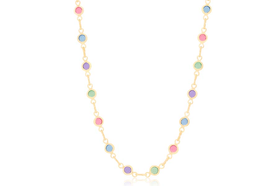 GARGANTILHA BANHADA EM OURO, GRAVATA, ELO PORTUGUÊS 2mm, E ZIRCÔNIA REDONDA, QUADRADA E CORAÇÃO
