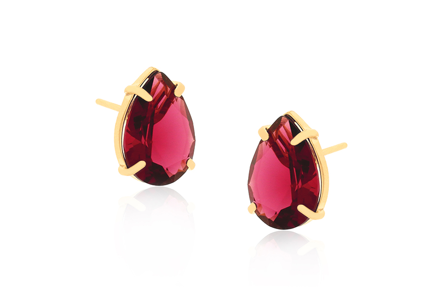 BRINCO BANHADO EM OURO, CRISTAL REDONDO 14mm DIÂMETRO
