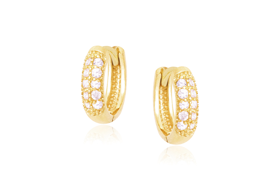 BRINCO BANHADO EM OURO, 15mm ALTURA COM 21 ZIRCÔNIAS
