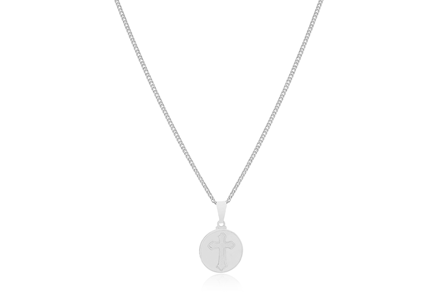 GARGANTILHA BANHADA EM OURO, NOSSA SENHORA DAS GRAÇAS, OVAL 28x23mm, 2 FLORES, ELO VENEZIANA 0,80mm, 45cm COMPRIMENTO, EXTENSOR 5cm