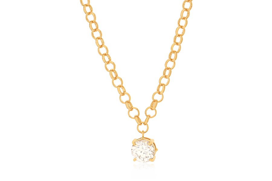 GARGANTILHA BANHADA EM OURO, CRISTAL REDONDO 14mm DIÂMETRO, ELO PORTUGUÊS 7mm DIÂMETRO, 1,90mm ESPESSURA E 37cm COMPRIMENTO