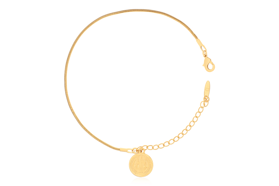 PULSEIRA BANHADA EM OURO, ELO 5mm LARGURA, 18cm COMPRIMENTO E MEDALHA PAI NOSSO 26mm DIÂMETRO