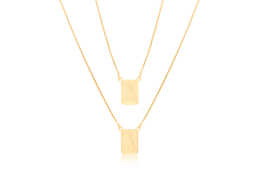 GARGANTILHA BANHADA EM OURO, VENEZIANA 1,50mm ESPESSURA, 45cm COMPRIMENTO E NOSSA SENHORA APARECIDA 30X21mm