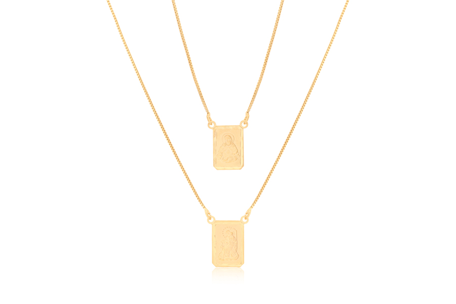 GARGANTILHA BANHADA EM OURO, NOSSA SENHORA DE CARAVAGGIO OVAL 20x18mm, ELO VENEZIANA 0,80mm, 40cm COMPRIMENTO, EXTENSOR 5cm