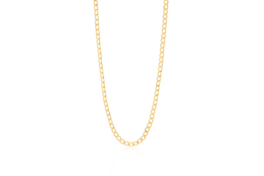 CORRENTE BANHADA EM OURO, ELO PORTUGUÊS 3mm, 40cm COMPRIMENTO, EXTENSOR 5cm COMPRIMENTO E PESO 7,10g