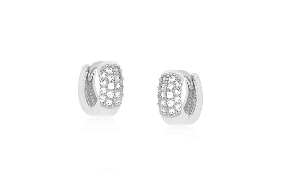 BRINCO BANHADO EM RÓDIO BRANCO, ARGOLINHA 12mm DIÂMETRO, COM 18 ZIRCÔNIAS
