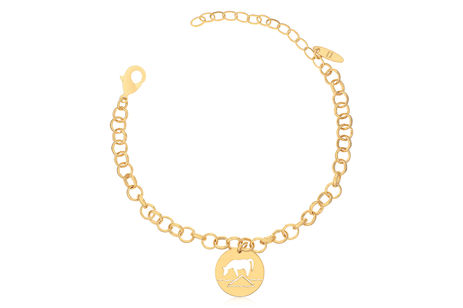 PULSEIRA BANHADA EM OURO, ESCRAVA, ELO 3,10mm LARGURA, 18cm COMPRIMENTO E PINGENTE REDONDO 17mm DIÂMETRO