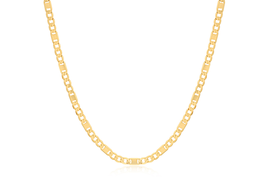 CORRENTE BANHADA EM OURO, ELO PORTUGUÊS 7mm DIÂMETRO, 1,90mm ESPESSURA, 45cm COMPRIMENTO E PESO 28,70g