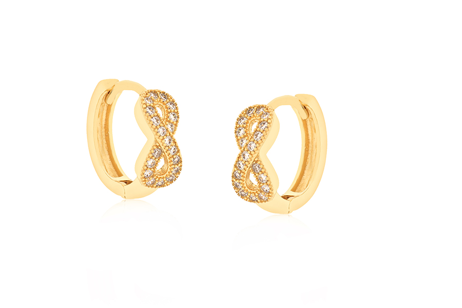 BRINCO BANHADO EM OURO, ARGOLINHA COM 10 ZIRCÔNIAS E 14mm DIÂMETRO