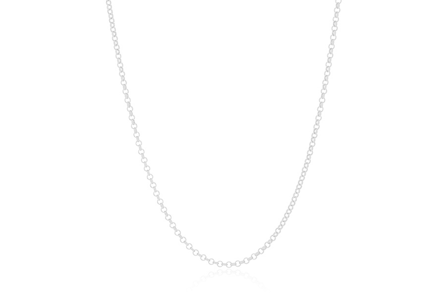 CHOKER BANHADA EM RÓDIO BRANCO, CORRENTE ELO LACRAIA 4mm, 35cm COMPRIMENTO, EXTENSOR 10cm COMPRIMENTO E PESO 9,70g