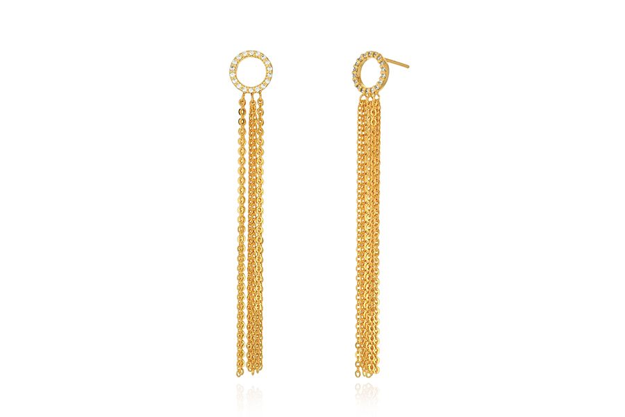 BRINCO BANHADO EM OURO, BASE ARO VAZADO, PENDENTE COM LAÇO, GUIRLANDA 31mm LARGURA