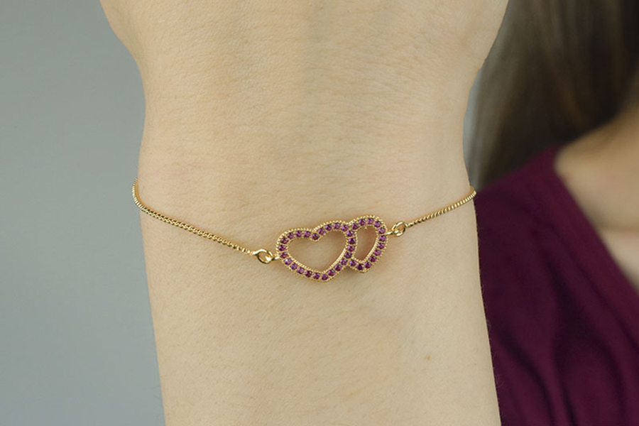 PULSEIRA BANHADA EM OURO, CRISTAL OVAL 11X9mm OU TRIANGULAR 12mm, FECHO GRAVATA, RABO DE RATO 1,40mm E PONTO DE LUZ 3,50mm, COLEÇÃO PINK