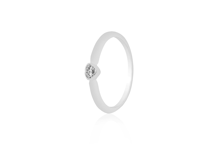 ANEL BANHADO EM RÓDIO BRANCO, CORAÇÃO 5mm LARGURA