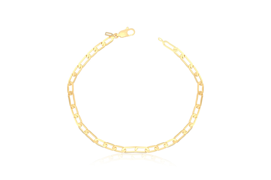 PULSEIRA BANHADA EM OURO, CORRENTE ELO PORTUGUÊS 2,50mm, 17cm COMPRIMENTO, EXTENSOR 5cm COMPRIMENTO E PESO 2,20g