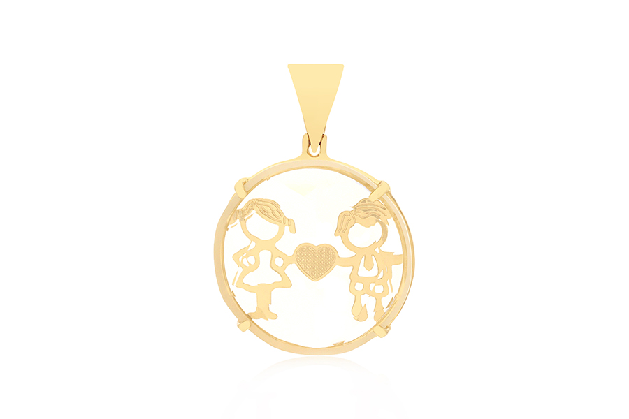 PINGENTE BANHADO EM OURO, CRISTAL REDONDO 20mm, 2 MENINAS