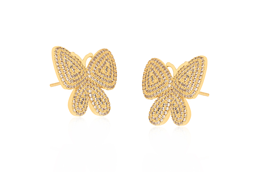 BRINCO BANHADO EM RÓDIO BRANCO, BORBOLETA 15mm LARGURA