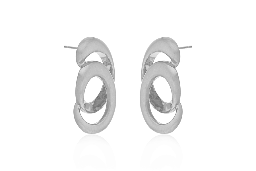 BRINCO BANHADO EM RÓDIO BRANCO, NAVETE 7,50mm COMPRIMENTO