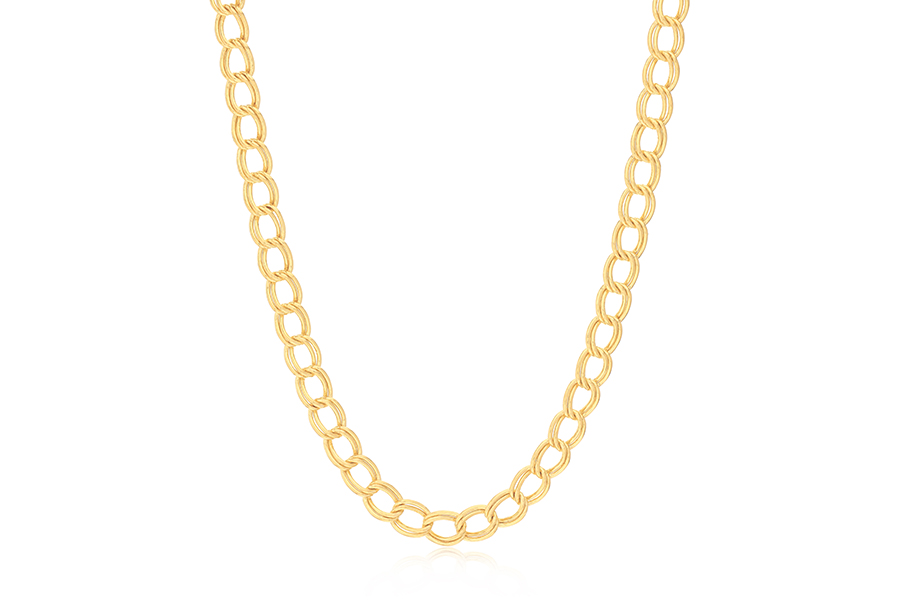 CORRENTE BANHADA EM OURO, ELO CORDA 2,50mm, 45cm COMPRIMENTO, EXTENSOR 5cm COMPRIMENTO E PESO 8,70g