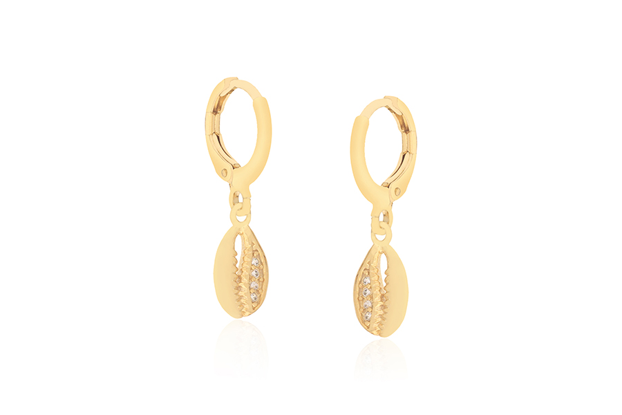 BRINCO BANHADO EM OURO, PÉROLA SHELL 8mm, LINHA TRADICIONAL