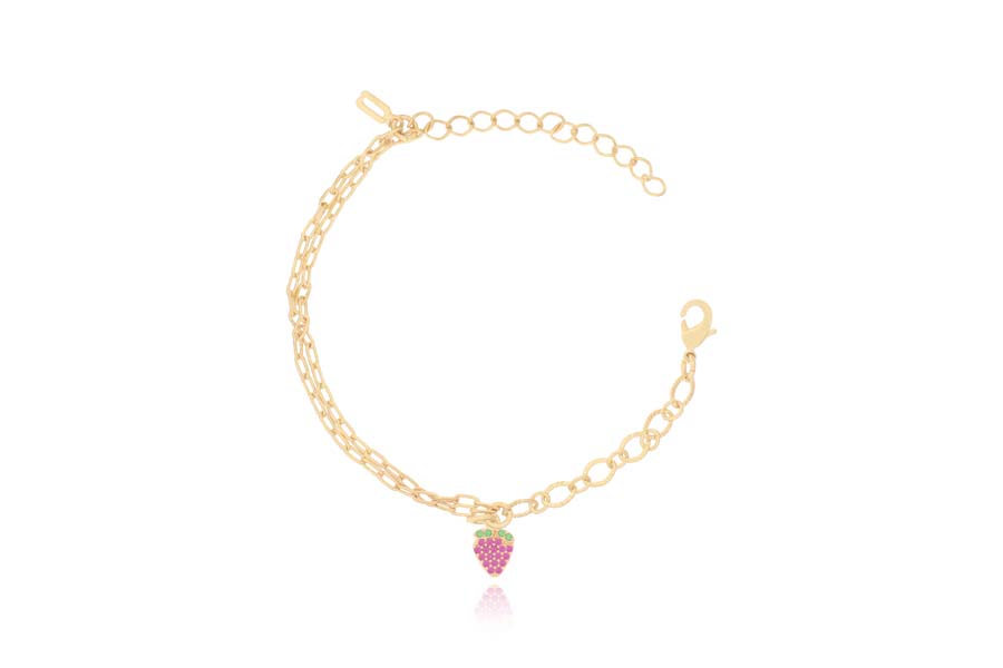 PULSEIRA INFANTIL BANHADA EM OURO, ELO DUPLO 1,80mm E CARTIER 3,50x1,90mm, 15cm COMPRIMENTO, CORAÇÃO, ANJO E CHAVE