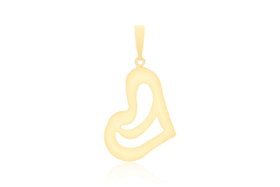 PINGENTE BANHADO EM OURO, CORAÇÃO 28mm LARGURA E CONTRA ARGOLA COM ZIRCÔNIAS, LISO OU ACETINADO