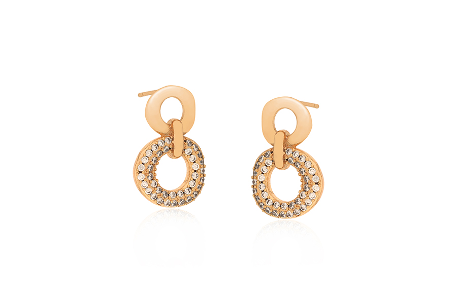 BRINCO BANHADO EM OURO, 23mm COMPRIMENTO COM ZIRCÔNIAS BRANCAS OU COLORIDAS
