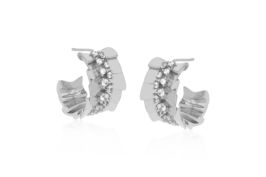 BRINCO BANHADO EM RÓDIO BRANCO, ASA, 21mm ALTURA