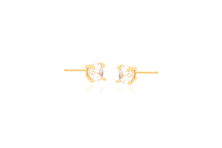 BRINCO BANHADO EM OURO, ZIRCÔNIA REDONDA 8mm, PARA QUALQUER COR DE PEDRA
