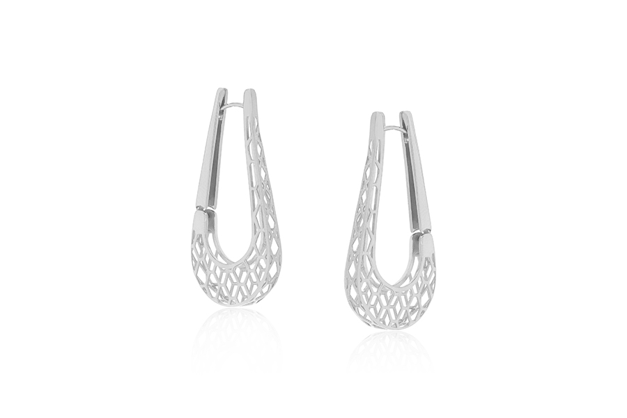 BRINCO BANHADO EM RÓDIO BRANCO, REDONDO 13,50mm DIÂMETRO, COLEÇÃO FILIGRAN