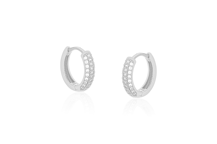 BRINCO BANHADO EM RÓDIO BRANCO, ARGOLA 20mm DIÂMETRO, COM ZIRCÔNIAS SÓ EM UMA LATERAL