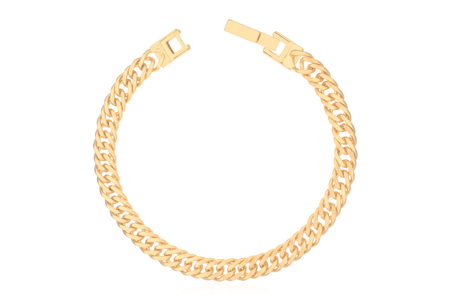 PULSEIRA BANHADA EM OURO, CORRENTE ELO PORTUGUÊS 5mm, 17cm COMPRIMENTO, EXTENSOR 5cm COMPRIMENTO E PESO 4,60g