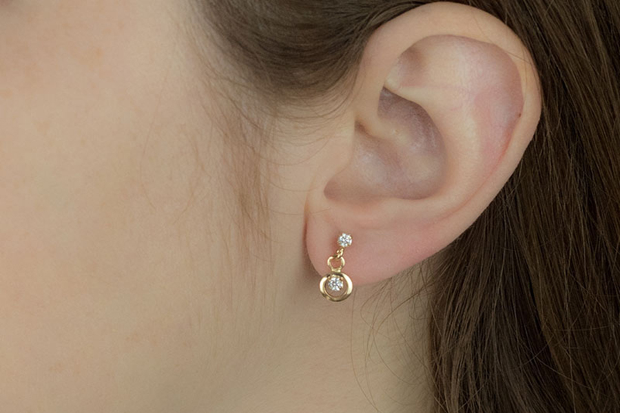 BRINCO BANHADO EM OURO, PONTO DE LUZ 12mm DIÂMETRO