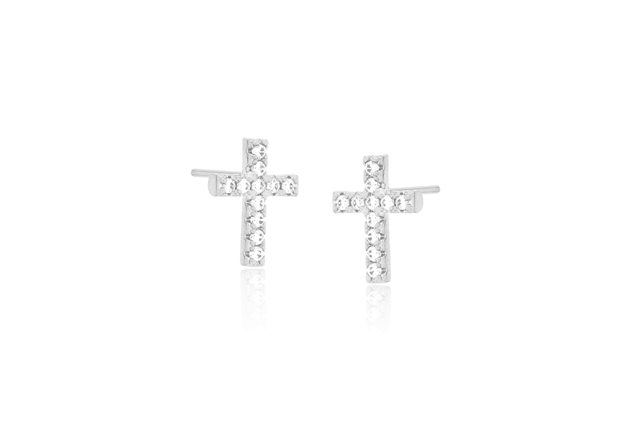 BRINCO BANHADO EM RÓDIO BRANCO, 15mm ALTURA COM 21 ZIRCÔNIAS