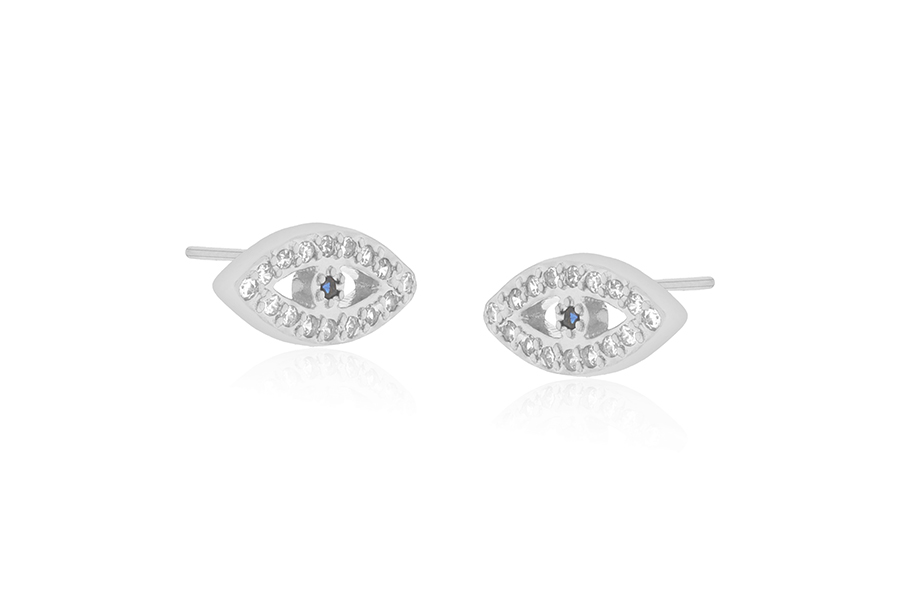 BRINCO BANHADO EM RÓDIO BRANCO, 15mm ALTURA COM 21 ZIRCÔNIAS