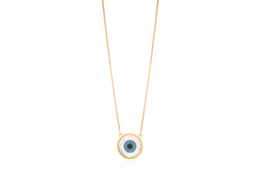 GARGANTILHA BANHADA EM RÓDIO BRANCO, VENEZIANA 0,80mm, 45cm COMPRIMENTO, INFINITO 5,80mm LARGURA E OLHO GREGO 4mm DIÂMETRO
