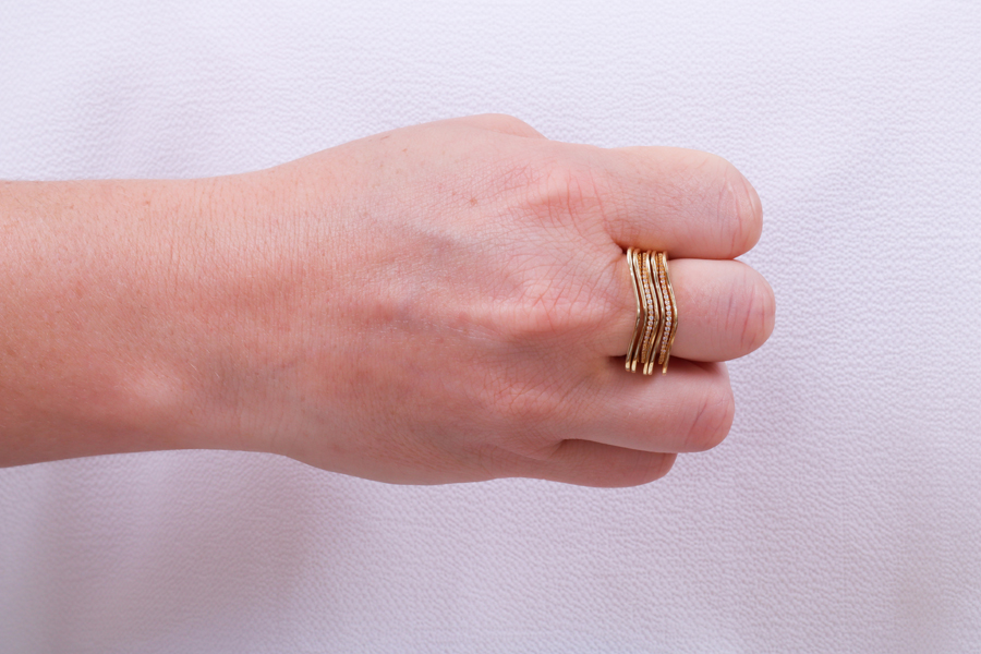 ANEL EM PRATA, 4 FIOS, ONDAS LISAS E CRAVEJADAS