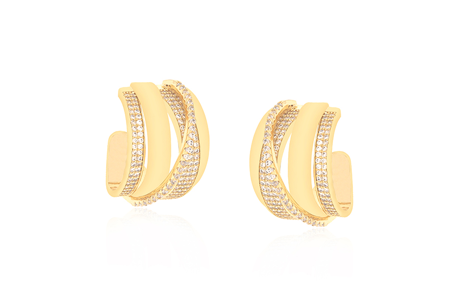 BRINCO BANHADO EM OURO, PONTO DE LUZ 5mm E CRAVAÇÃO INGLESA