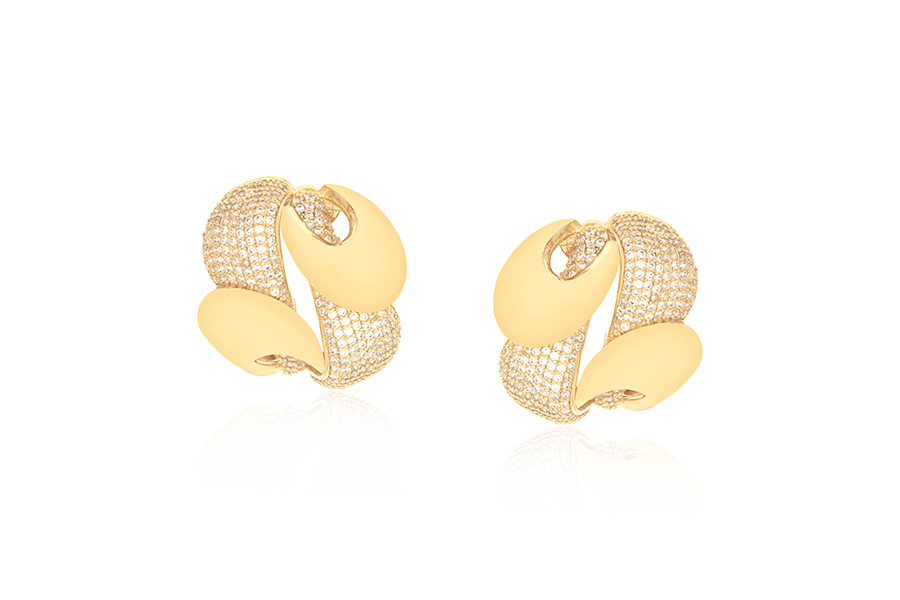 BRINCO BANHADO EM OURO, 29mm DE ALTURA, TARRAXA ASA, LISO OU ACETINADO, COLEÇÃO ALQUIMIA