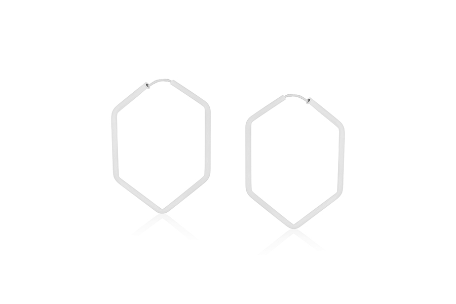 BRINCO BANHADO EM RÓDIO BRANCO, ARGOLINHA IRREGULAR, 19mm ALTURA, LISA OU ACETINADA