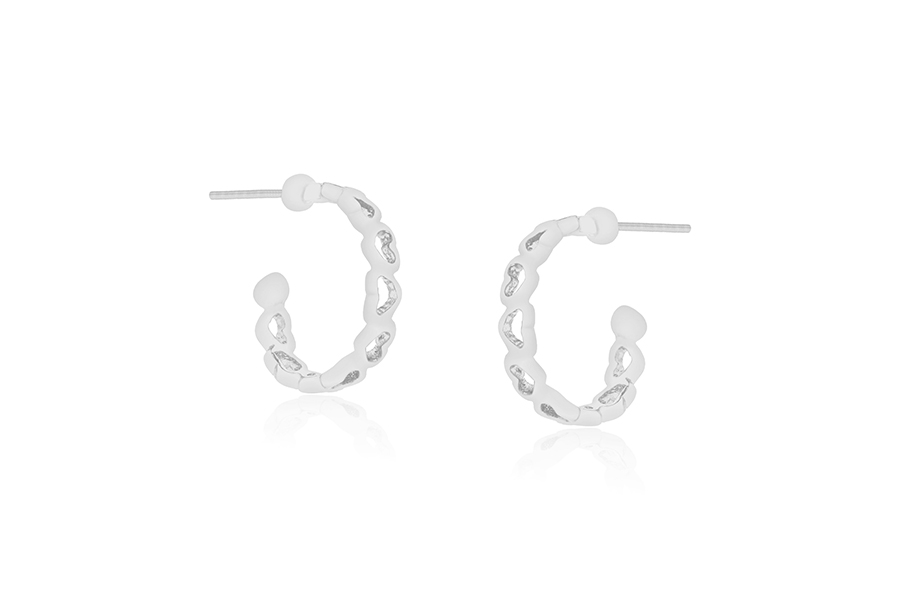 BRINCO BANHADO EM RÓDIO BRANCO, CORAÇÃO 4mm LARGURA, PARA QUALQUER COR DE PEDRA