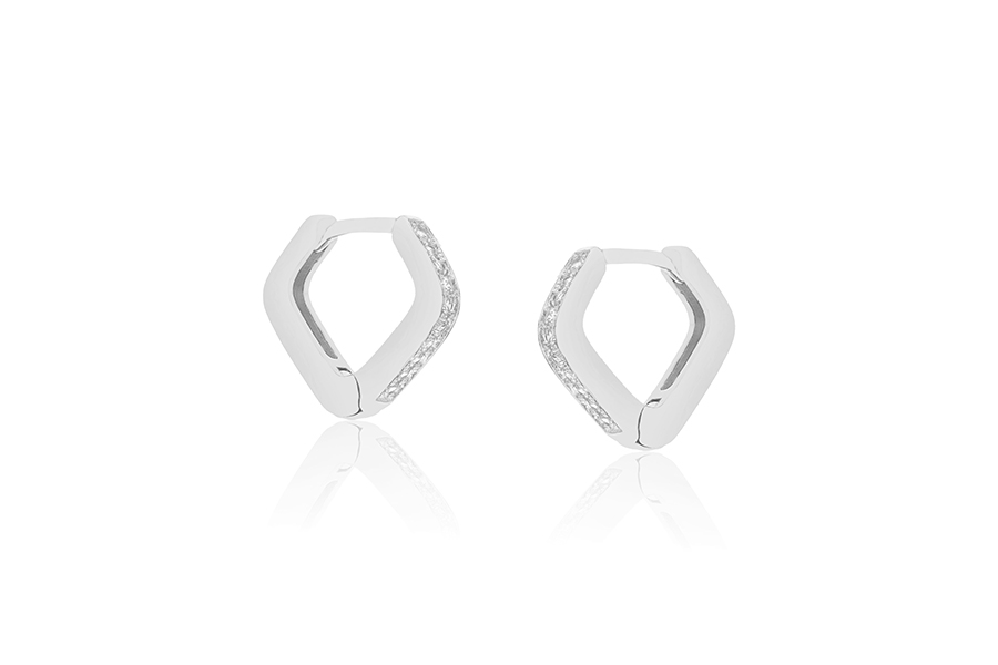 BRINCO BANHADO EM RÓDIO BRANCO, ARGOLINHA 14mm DIÂMETRO, 10mm LARGURA COM 5 ZIRCÔNIAS