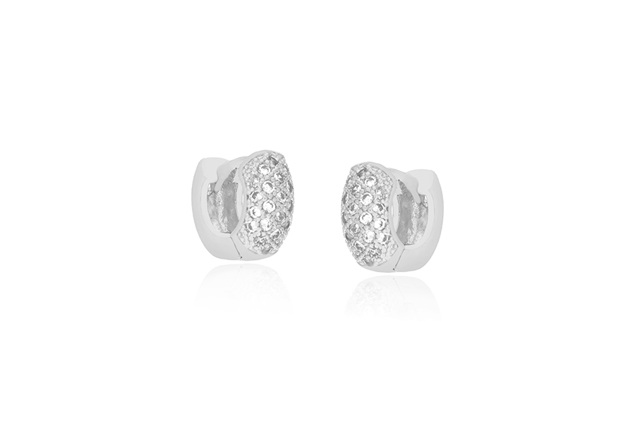 BRINCO BANHADO EM RÓDIO BRANCO, 15mm ALTURA COM 21 ZIRCÔNIAS