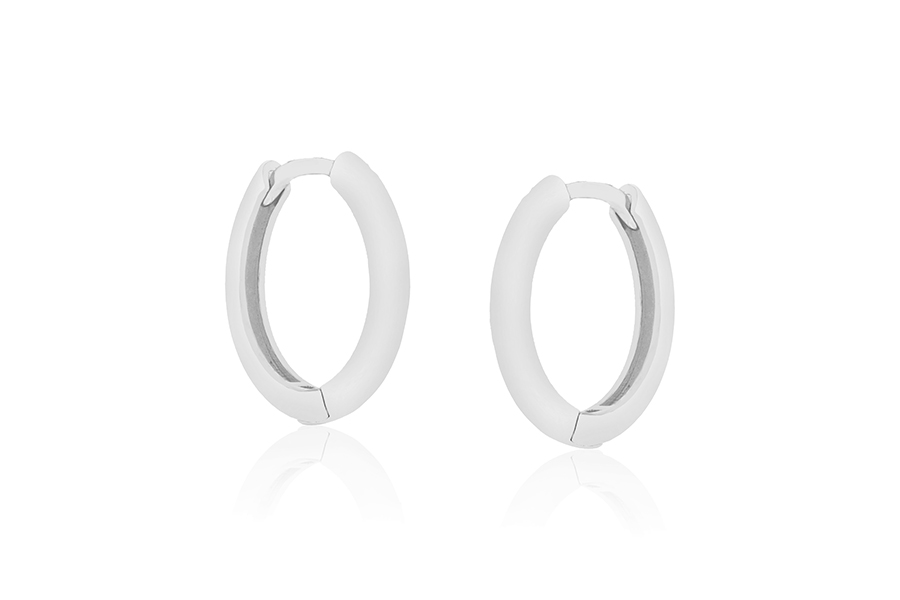 BRINCO BANHADO EM RÓDIO BRANCO, ARGOLINHA IRREGULAR, 19mm ALTURA, LISA OU ACETINADA