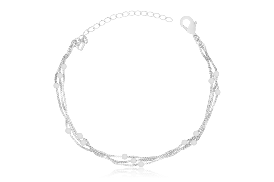 PULSEIRA BANHADA EM RÓDIO BRANCO, CORRENTE ELO 4mm DIÂMETRO, 19cm COMPRIMENTO, EXTENSOR 5cm COMPRIMENTO E PESO 5,20g